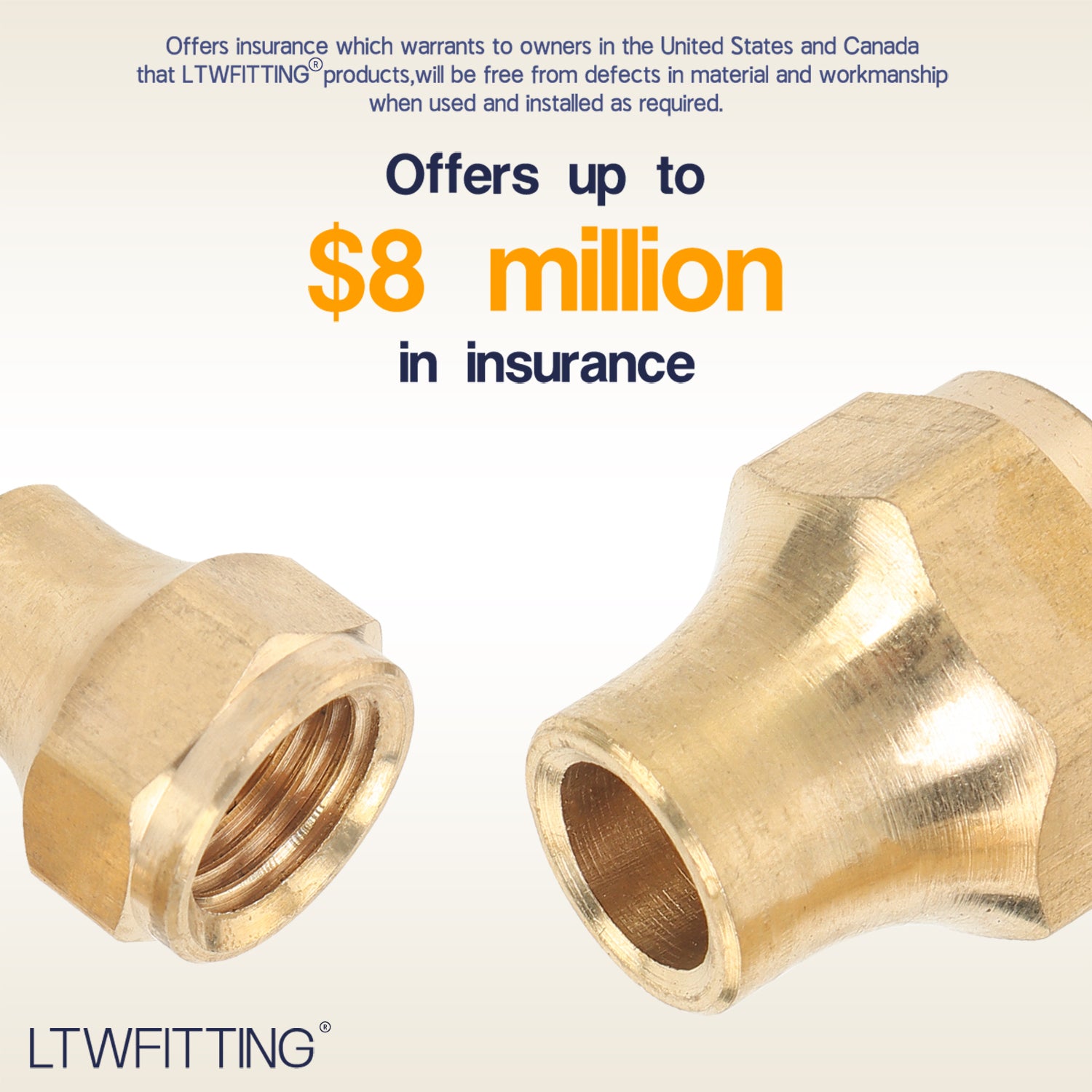 Brass 1/4 Inch OD Short 45 Degree Flare Nut,Brass Flare Tube Fitting(Pack of 10)