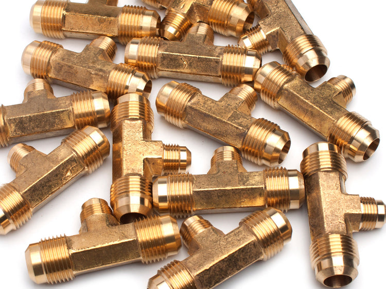Brass Fittings 5/8 Inch x 5/8 Inch x 3/8 Inch OD 45 Degree Flare Reducing Tee(Pack of 70)