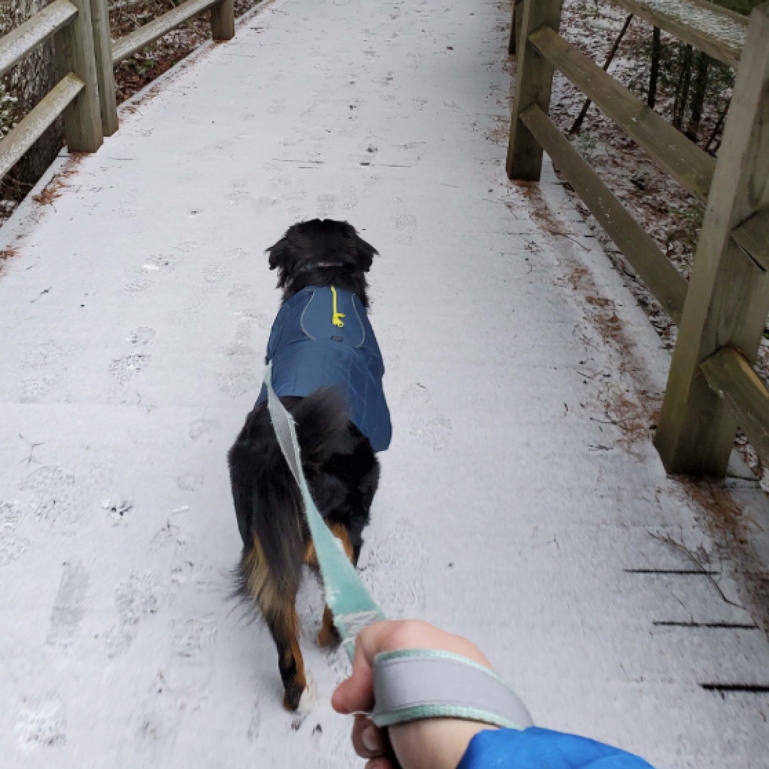 The breathable yet insulated design provides warmth without overheating, making it perfect for chilly or drizzly days. A discreet back zipper opening allows easy attachment to harnesses, so you never have to remove the coat for walks.