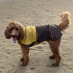 Crafted from high-quality waterproof fabric, the raincoat features a striking black and green color block design that combines practicality with modern style. The lightweight material provides full coverage without weighing your dog down, making it perfect for active adventures or quick potty breaks in the rain.