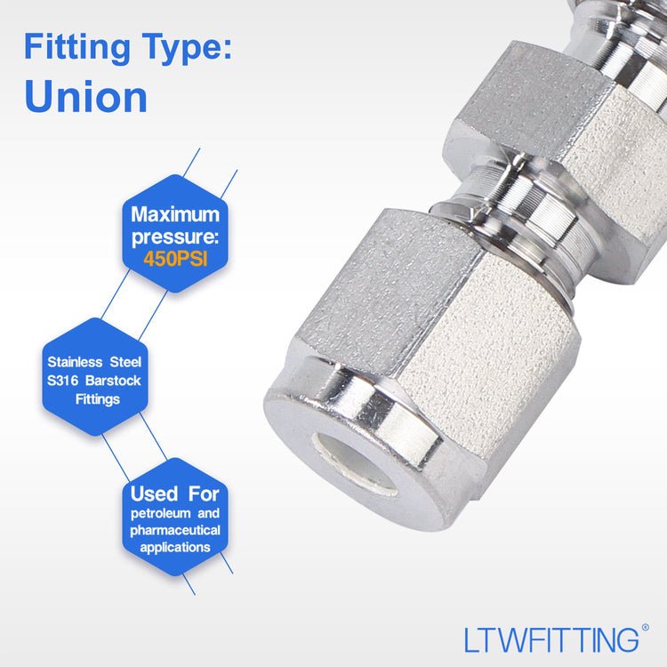 LTWFITTING 3/16-Inch OD Compression Union,Stainless Steel 316 Compression Fitting (Pack of 250)