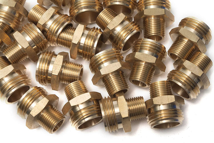 LTWFITTING 3/4 Inch MHT x 3/8 Inch MIP Brass Hose Adapter, Brass Garden Hose Fitting (Pack of 150)