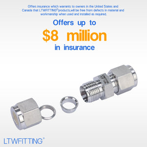 LTWFITTING 3/8-Inch OD Compression Union,Stainless Steel 316 Compression Fitting (Pack of 5)