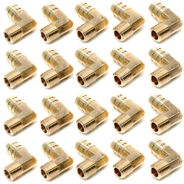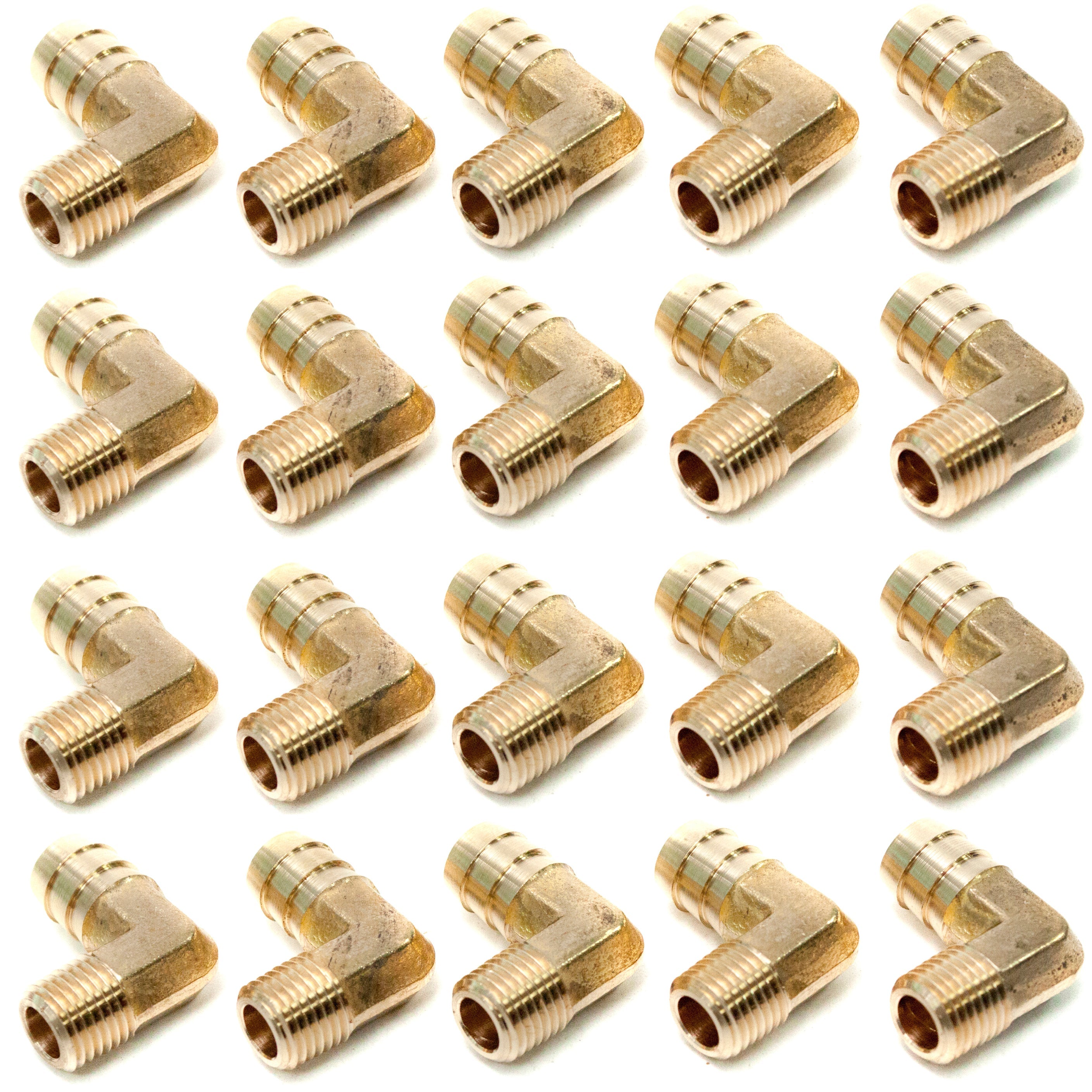 LTWFITTING 90 Degree Elbow Brass Barb Fitting 1/2 ID Hose x 1/4-Inch Male NPT Fuel Boat Water(Pack of 25)