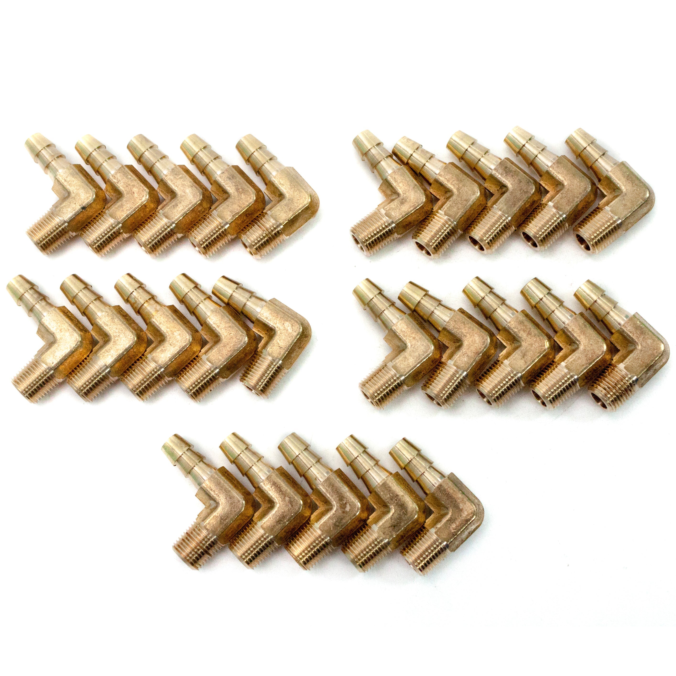 LTWFITTING 90 Degree Elbow Brass Barb Fitting 1/4 ID Hose x 1/8-Inch Male NPT Air(Pack of 25)