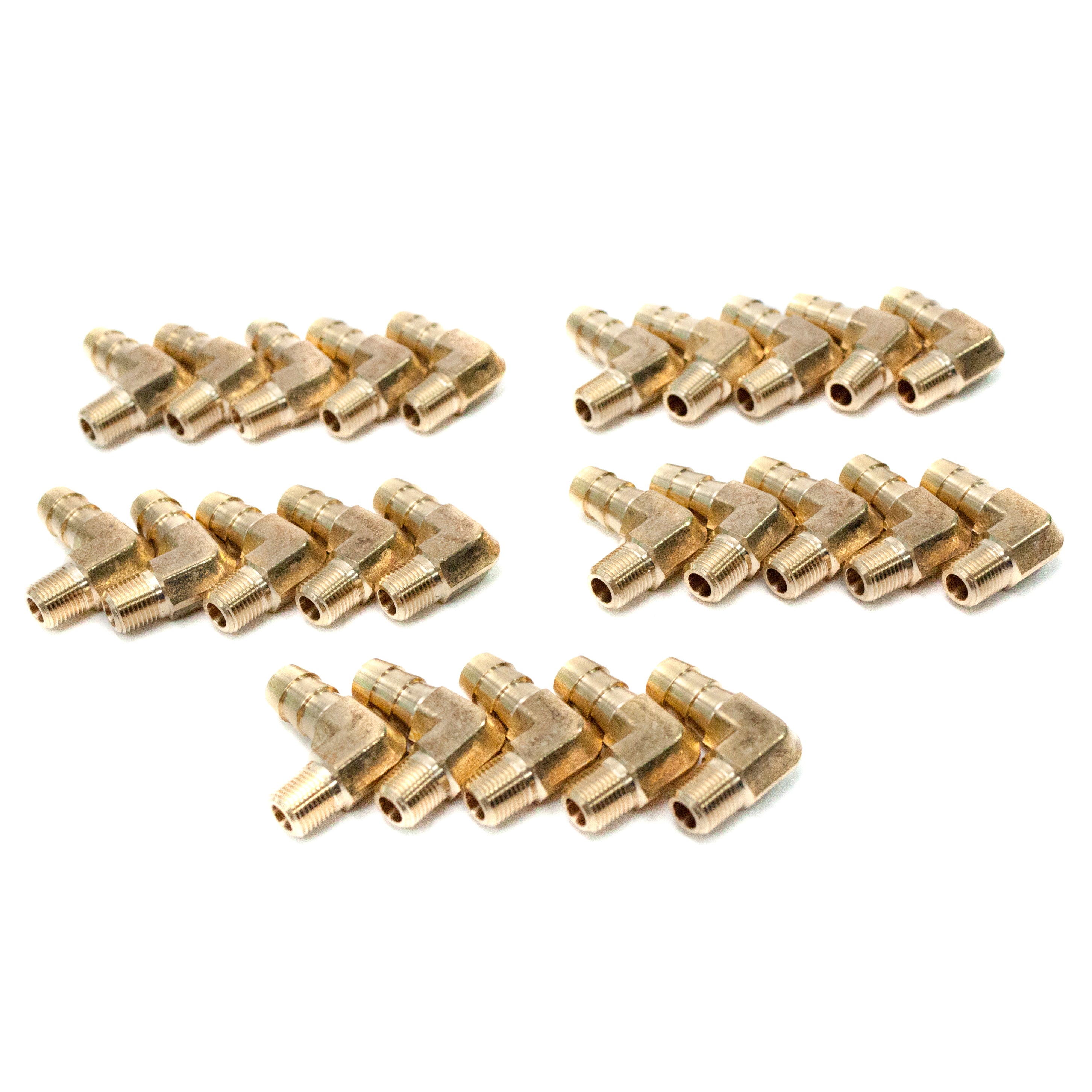 LTWFITTING 90 Degree Elbow Brass Barb Fitting 3/8 ID Hose x 1/8-Inch Male NPT Fuel Boat Water(Pack of 25)