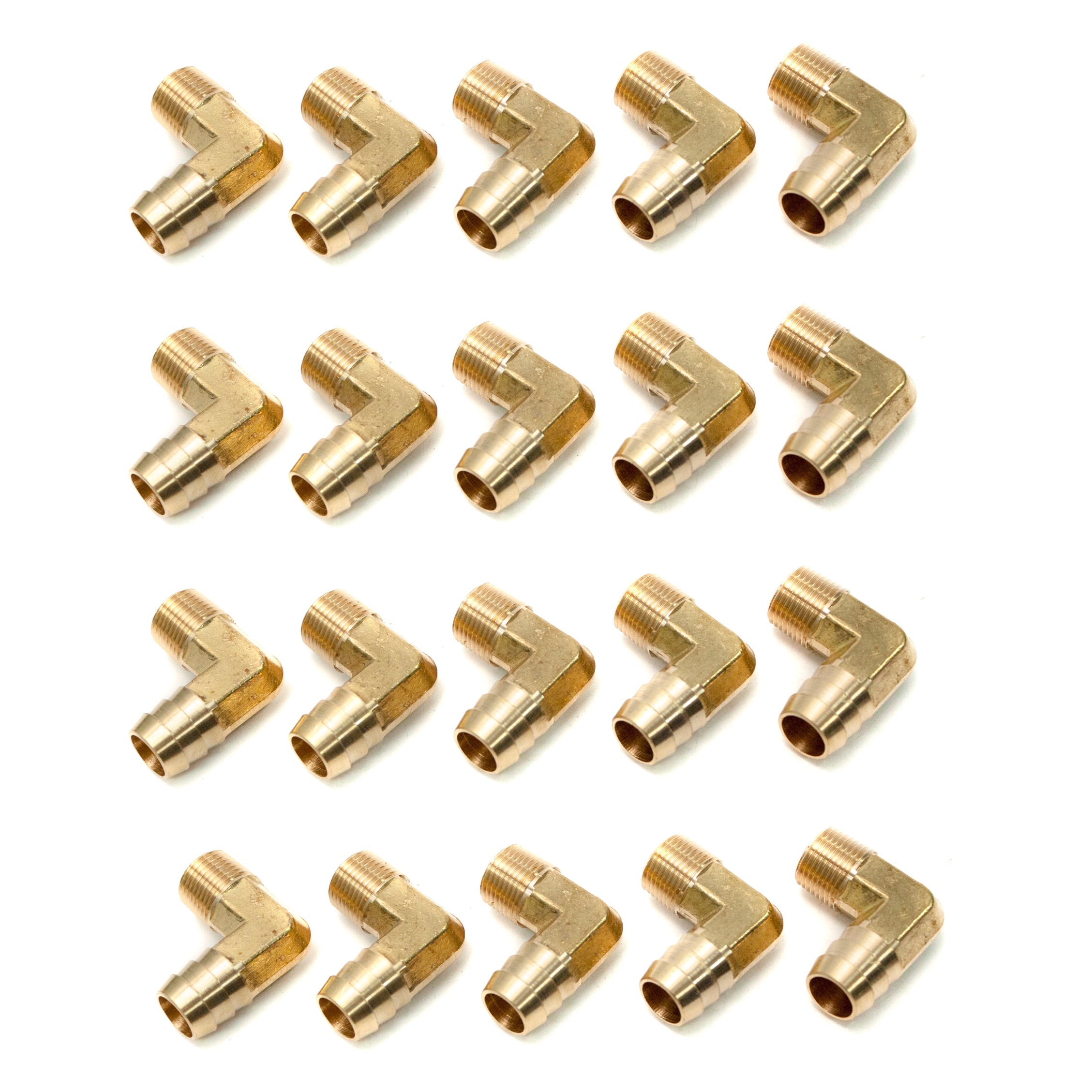 LTWFITTING 90 Degree Elbow Brass Barb Fitting 5/8 ID Hose x 3/8-Inch Male NPT Fuel Boat Water(Pack of 20)