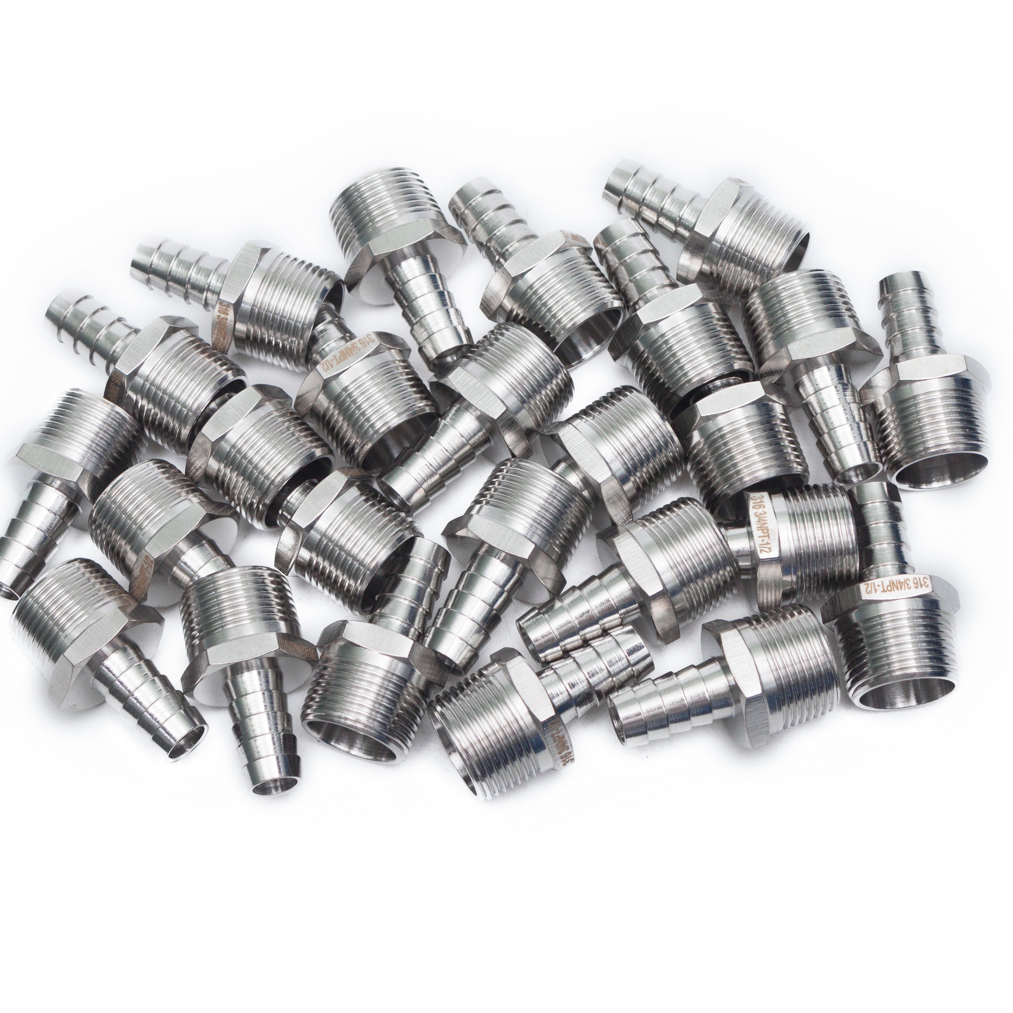 LTWFITTING Bar Production Stainless Steel 316 Barb Fitting Coupler/Connector 1/2 Inch Hose ID x 3/4 Inch Male NPT Air Fuel Water (Pack of 25)