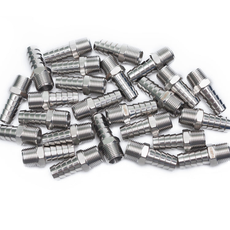 LTWFITTING Bar Production Stainless Steel 316 Barb Fitting Coupler/Connector 1/2 Inch Hose ID x 3/8 Inch Male NPT Air Fuel Water (Pack of 25)