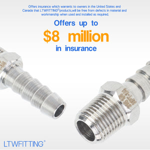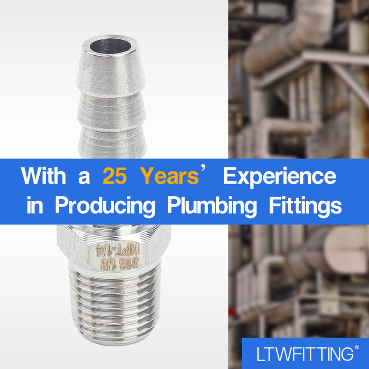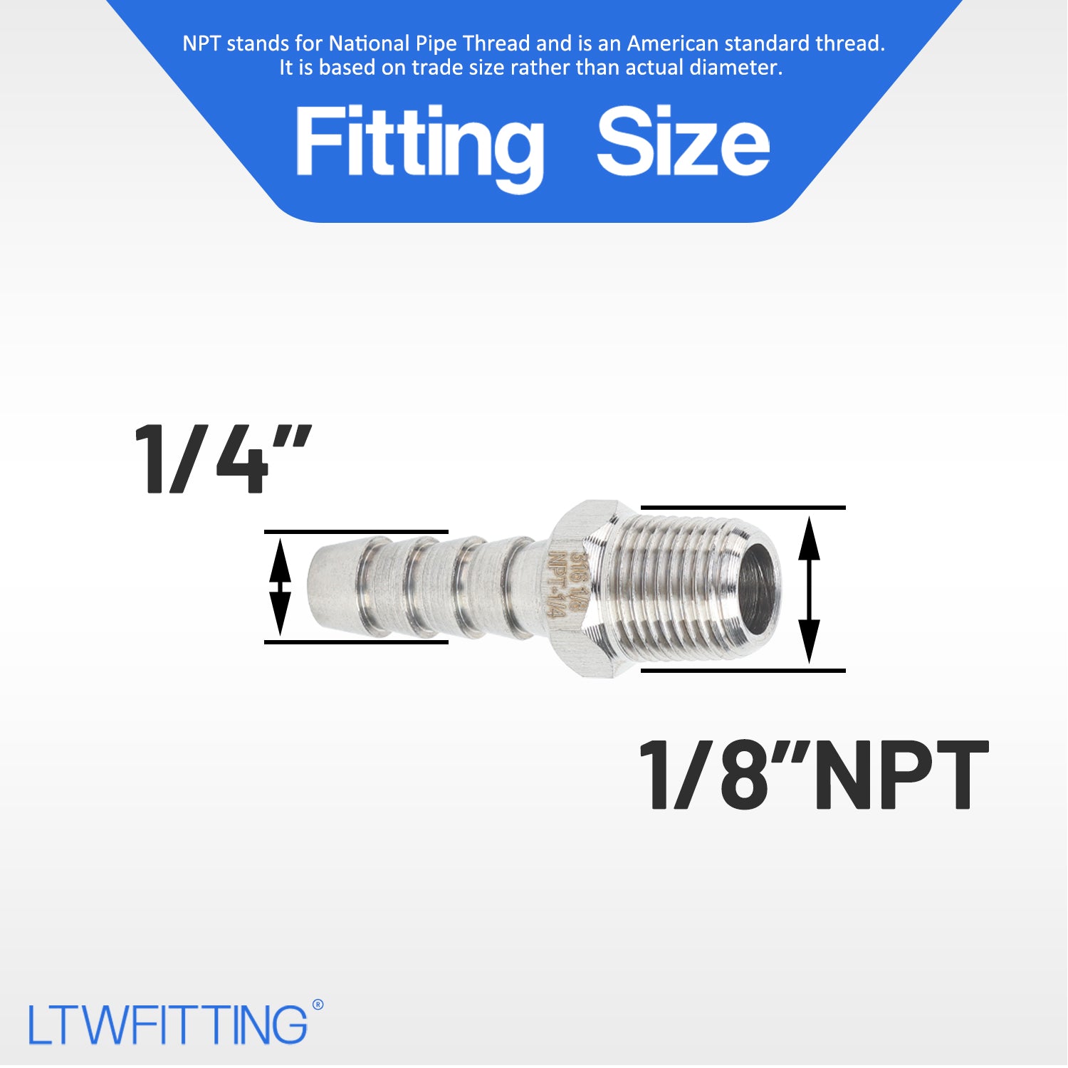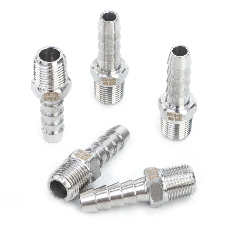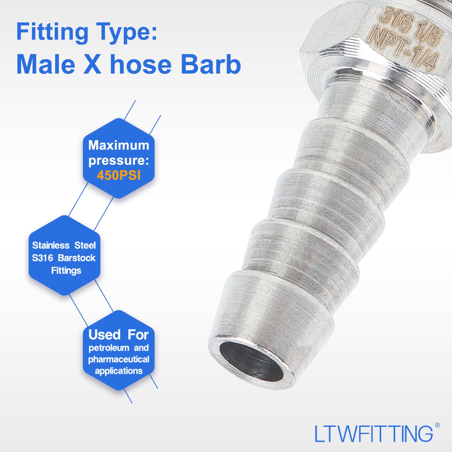 LTWFITTING Bar Production Stainless Steel 316 Barb Fitting Coupler/Connector 1/4 Inch Hose ID x 1/8 Inch Male NPT Air Fuel Water(Pack of 5)