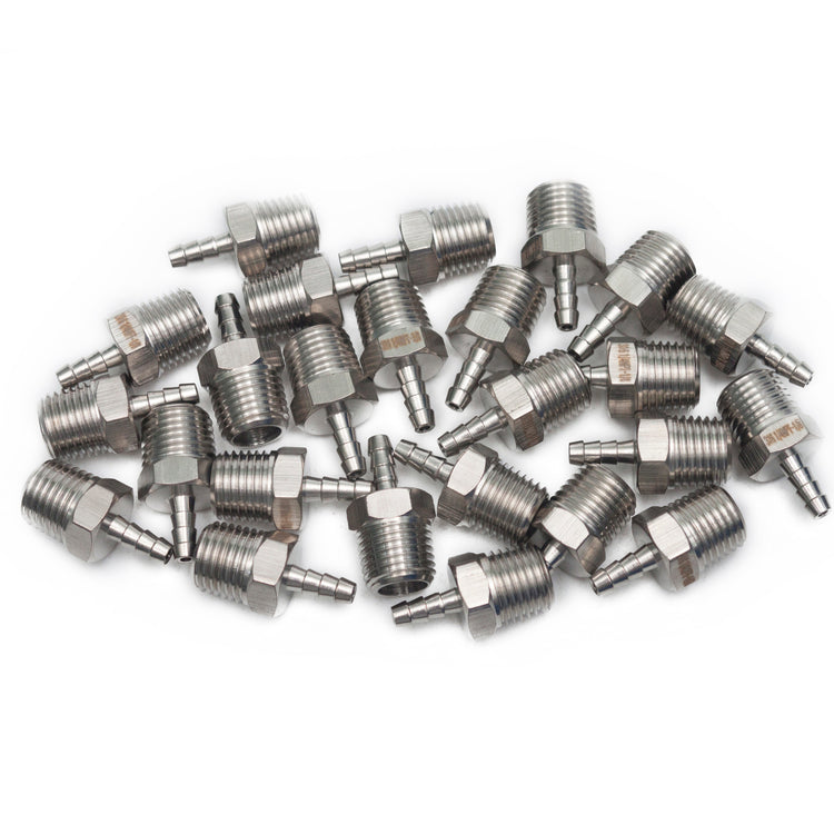 LTWFITTING Bar Production Stainless Steel 316 Barb Fitting Coupler/Connector 1/8 Inch Hose ID x 1/4 Inch Male NPT Air Fuel Water (Pack of 25)