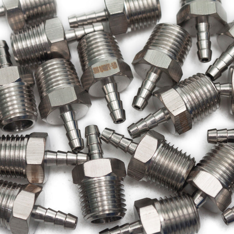 LTWFITTING Bar Production Stainless Steel 316 Barb Fitting Coupler/Connector 1/8 Inch Hose ID x 1/4 Inch Male NPT Air Fuel Water (Pack of 900)