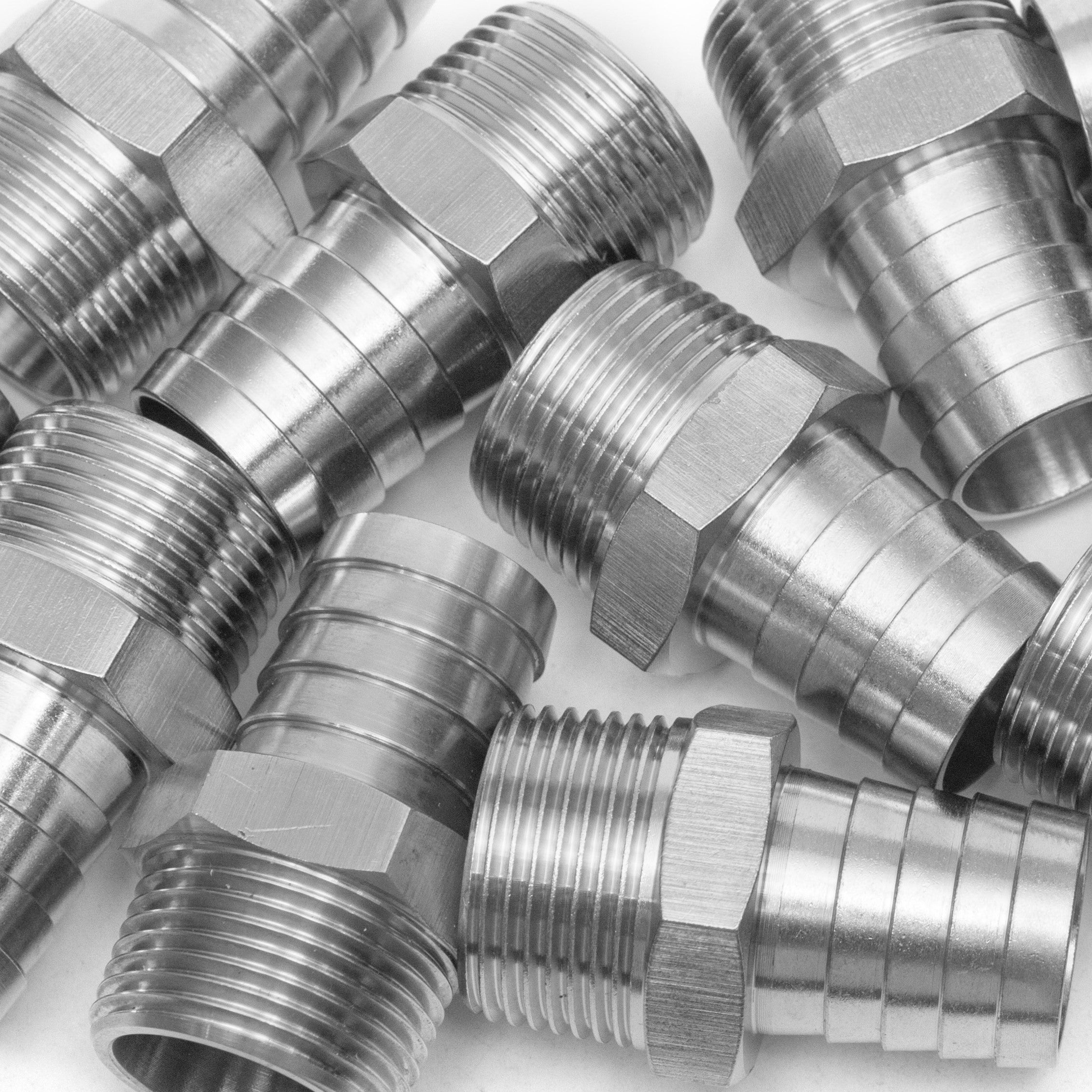 LTWFITTING Bar Production Stainless Steel 316 Barb Fitting Coupler/Connector 1 Inch Hose ID x 1 Inch Male NPT Air Fuel Water (Pack of 100)