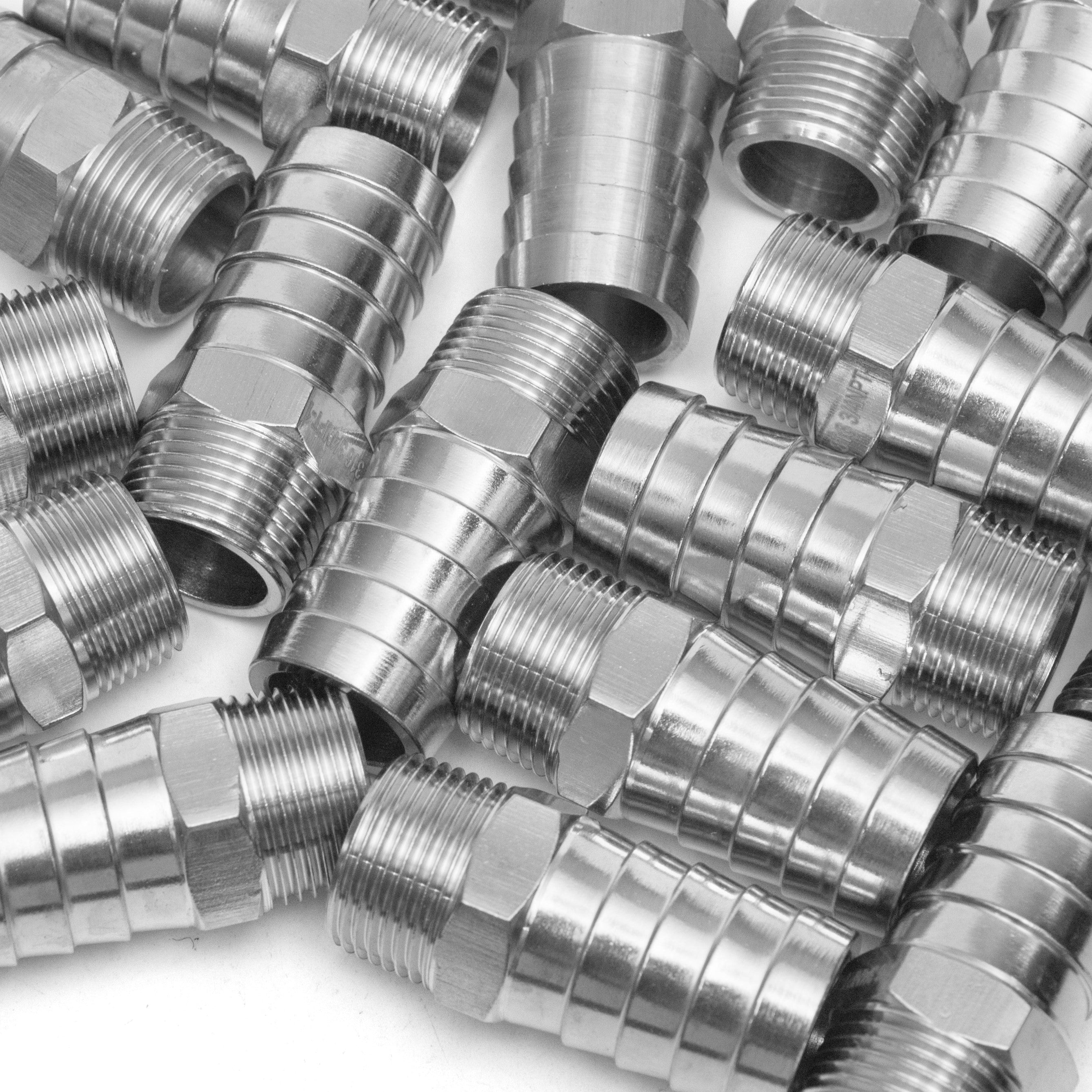 LTWFITTING Bar Production Stainless Steel 316 Barb Fitting Coupler/Connector 1 Inch Hose ID x 3/4 Inch Male NPT Air Fuel Water (Pack of 100)