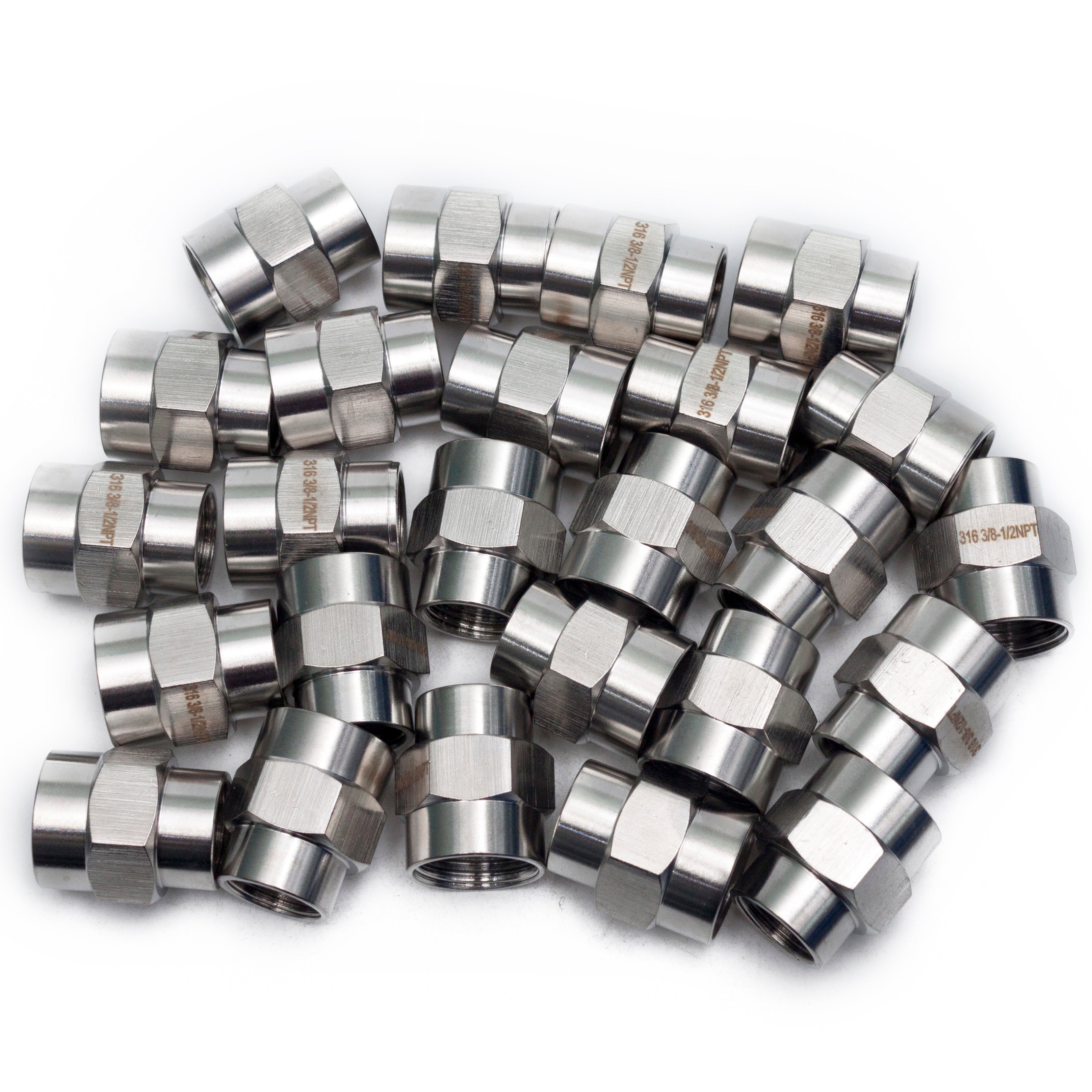 LTWFITTING Bar Production Stainless Steel 316 Pipe Fitting 1/2 Inch x 3/8 Inch Female NPT Reducing Coupling Water Boat (Pack of 25)