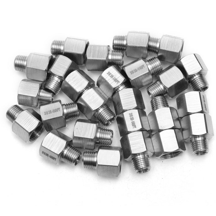 LTWFITTING Bar Production Stainless Steel 316 Pipe Fitting 3/8 Inch Female x 1/4 Inch Male NPT Adapter Air Fuel Water (Pack of 25)