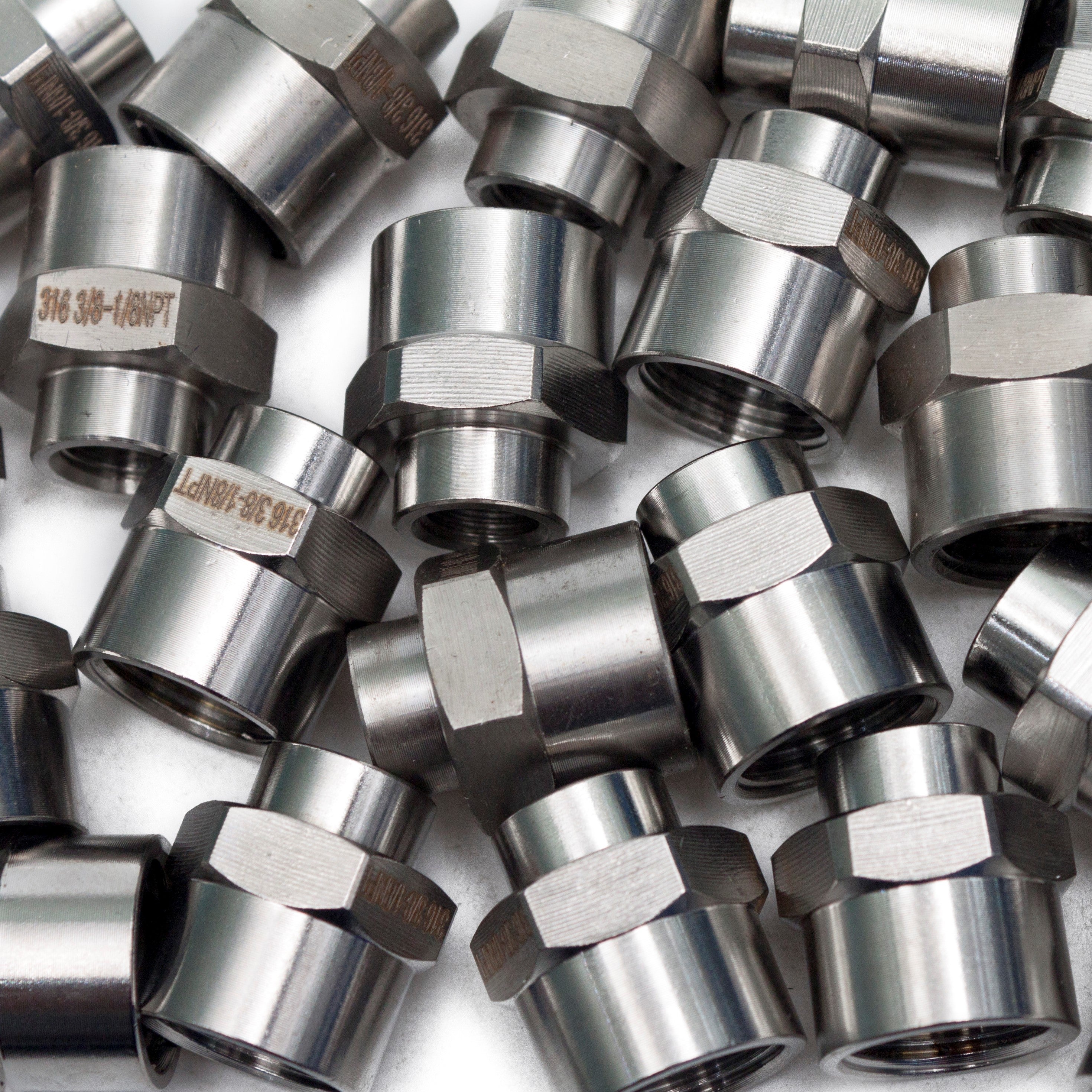 LTWFITTING Bar Production Stainless Steel 316 Pipe Fitting 3/8 Inch x 1/8 Inch Female NPT Reducing Coupling Water Boat (Pack of 400)