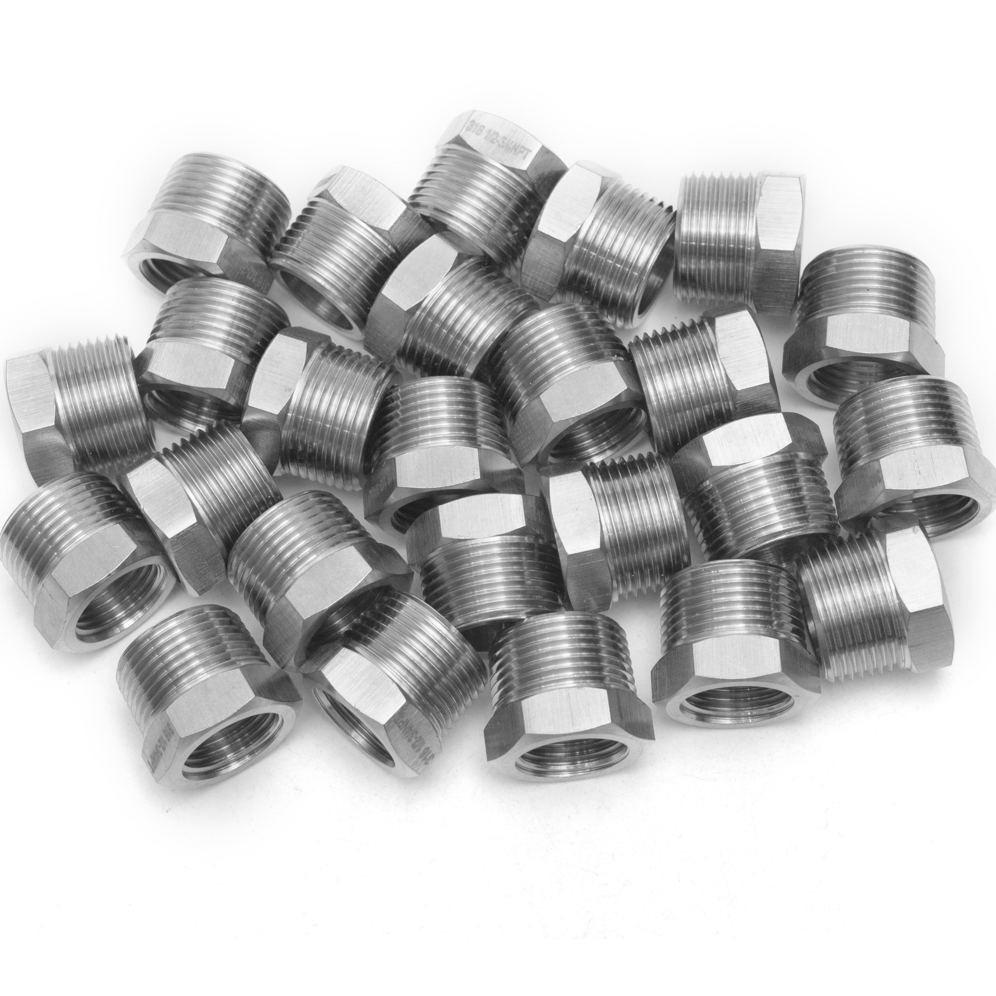 LTWFITTING Bar Production Stainless Steel 316 Pipe Hex Bushing Reducer Fittings 3/4 Inch Male x 1/2 Inch Female NPT Fuel Water Boat (Pack of 25)