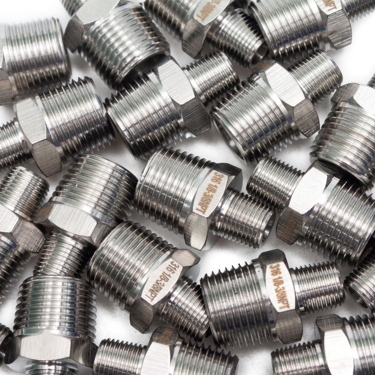 LTWFITTING Bar Production Stainless Steel 316 Pipe Hex Reducing Nipple Fitting 3/8 Inch x 1/8 Inch Male NPT Water Boat (Pack of 500)