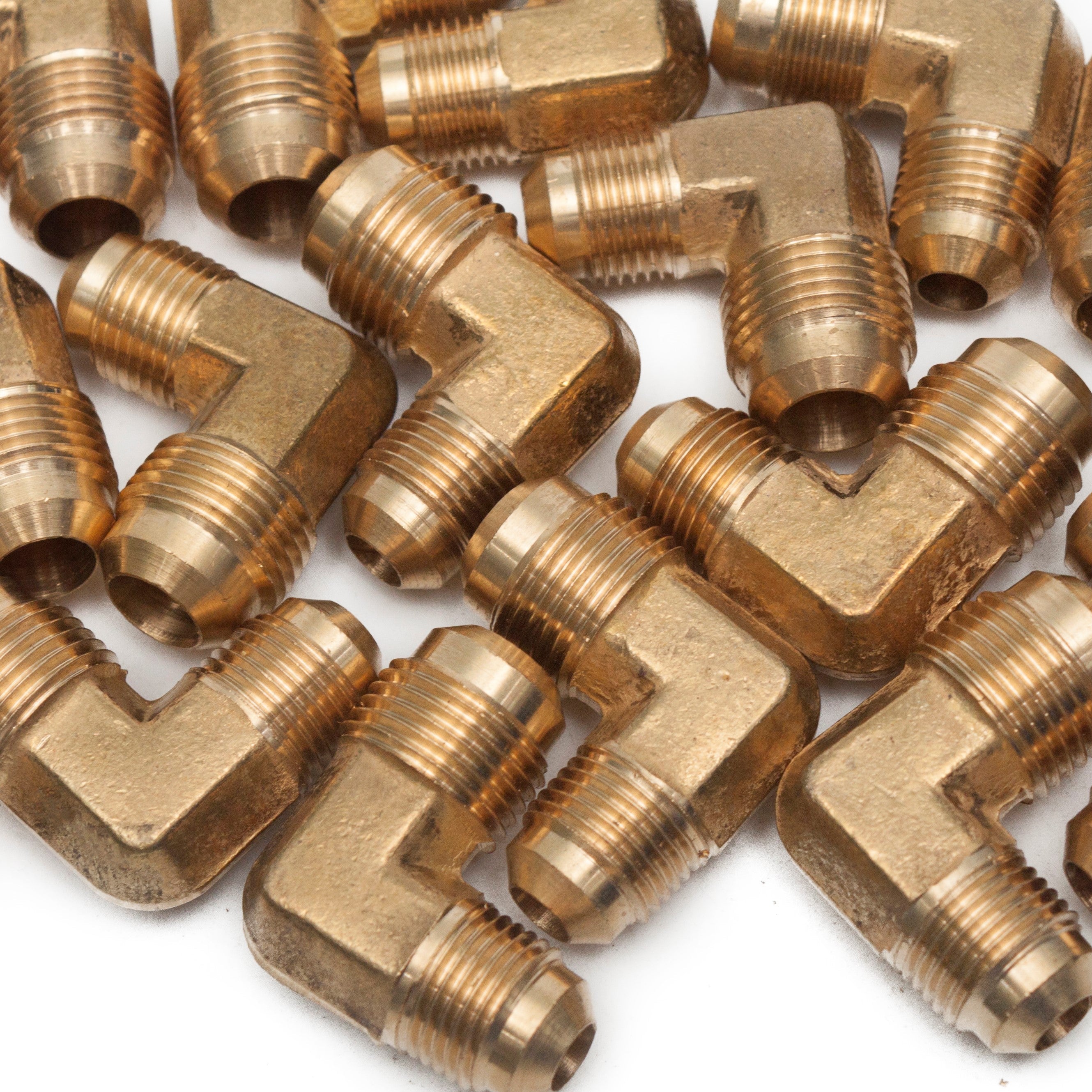 LTWFITTING Brass 1/2 Inch OD x 3/8 Inch OD 45 Degree Flare 90 Degree Union Reducing Elbow(Pack of 100)