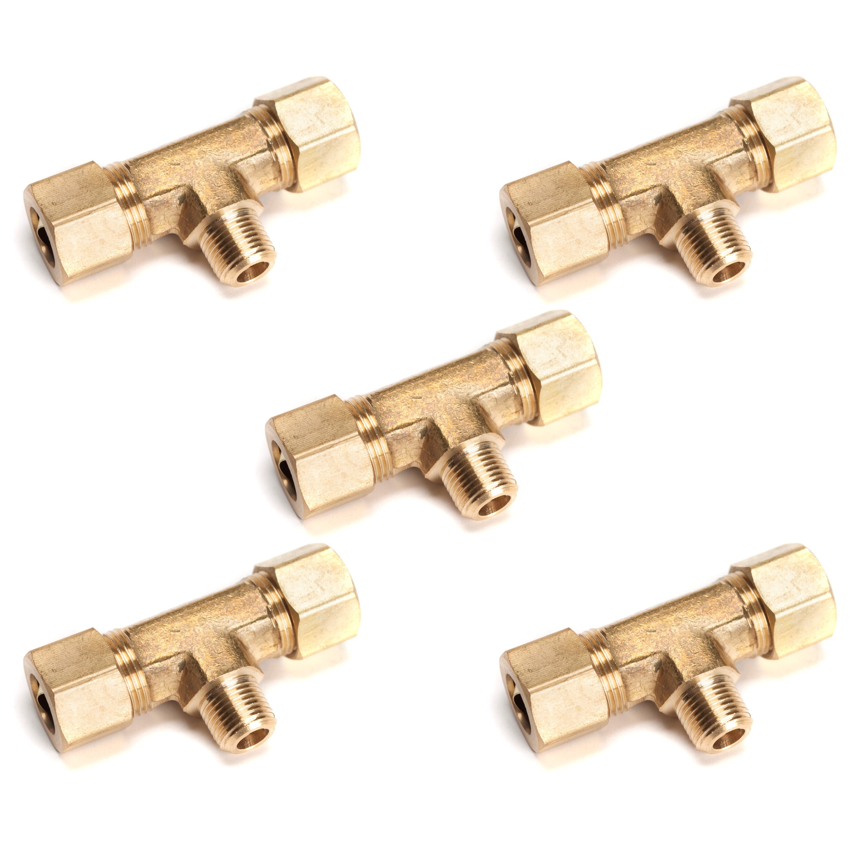 LTWFITTING Brass 3/8-Inch OD x 3/8-Inch OD x 1/8-Inch Male NPT Compression Branch Tee Fitting(Pack of 5)