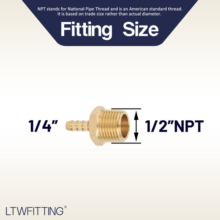 LTWFITTING Brass Barb Fitting Coupler/Connector 1/4-Inch Hose ID x 1/2-Inch Male NPT Fuel(Pack of 5)