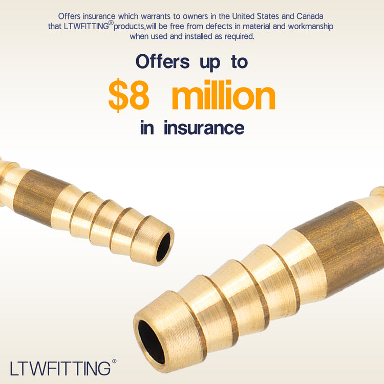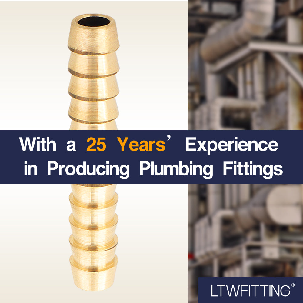LTWFITTING Brass Barb Splicer Mender 1/4-Inch Hose ID Fitting Air Water Fuel Hose Joiner(Pack of 10)