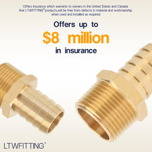 LTWFITTING Brass Fitting Connector 1/2-Inch Hose Barb x 3/4-Inch NPT Male Fuel Gas Water(Pack of 20)