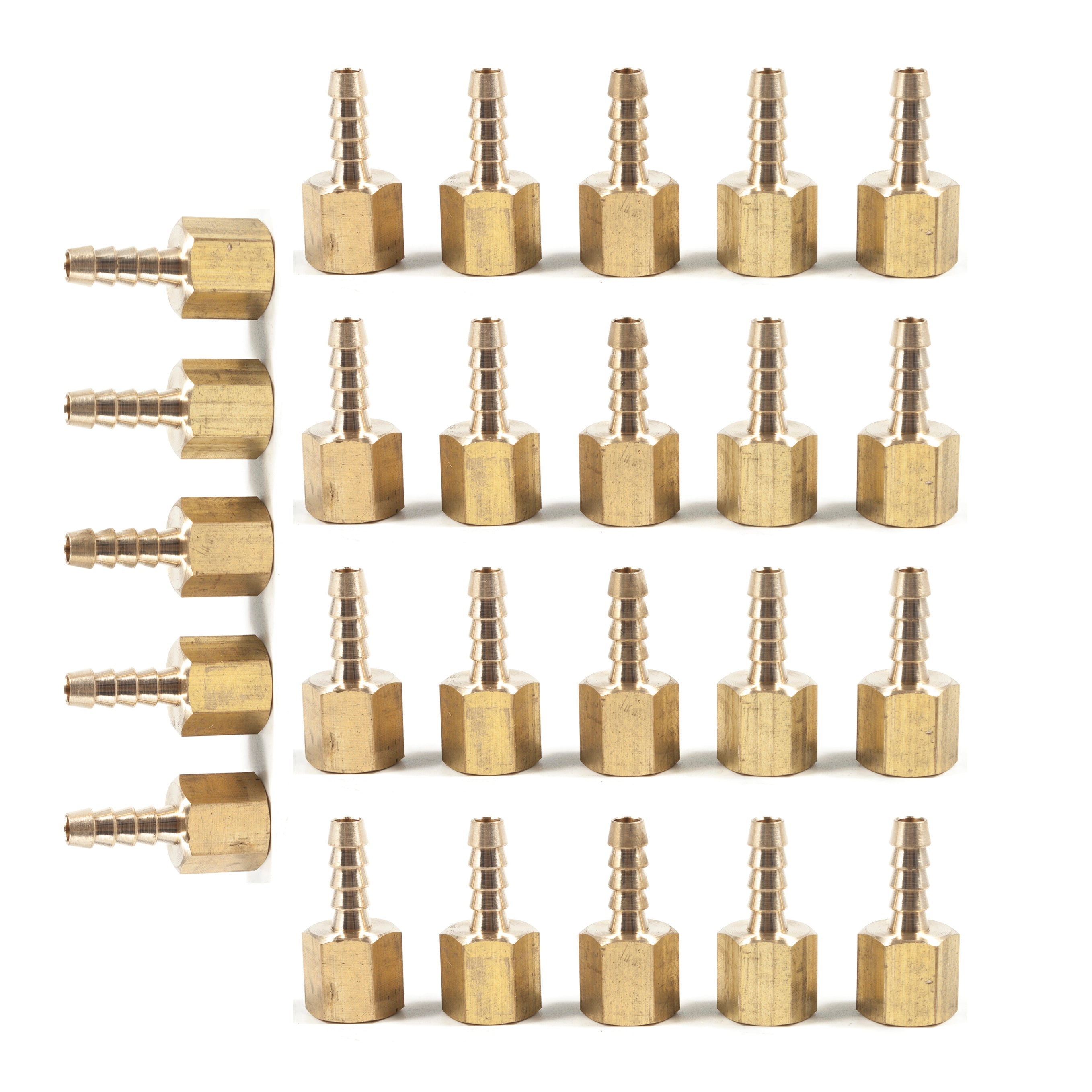 LTWFITTING Brass Fitting Coupler 1/4-Inch Hose Barb x 1/4-Inch Female NPT Fuel Water Boat(Pack of 25)
