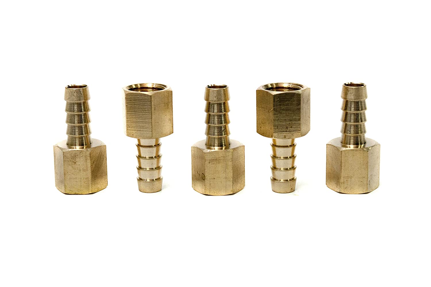 LTWFITTING Brass Fitting Coupler 5/16-Inch Hose Barb x 1/4-Inch Female NPT Fuel Water Boat(Pack of 5)