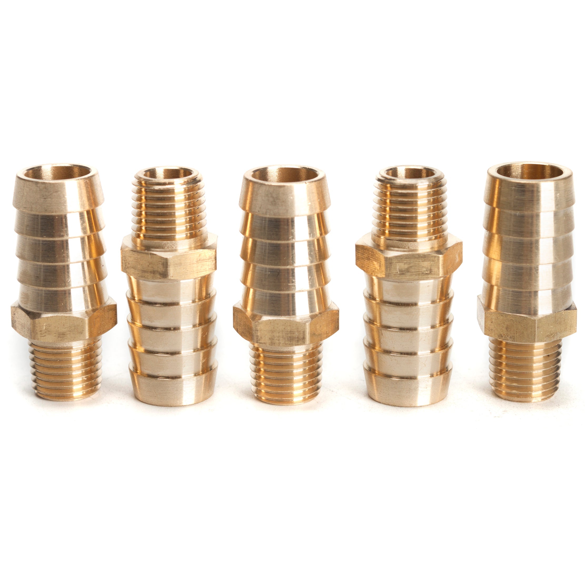 LTWFITTING Brass Fitting Coupler 5/8-Inch Hose Barb x 1/4-Inch Male NPT Adapter Gas Water(Pack of 5)