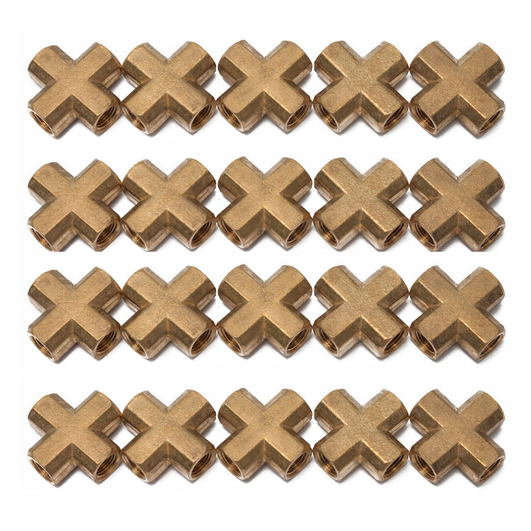 LTWFITTING Brass Pipe Female Cross Fitting 1/8 Inch NPT 4 Way Fuel Air Water(Pack of 20)