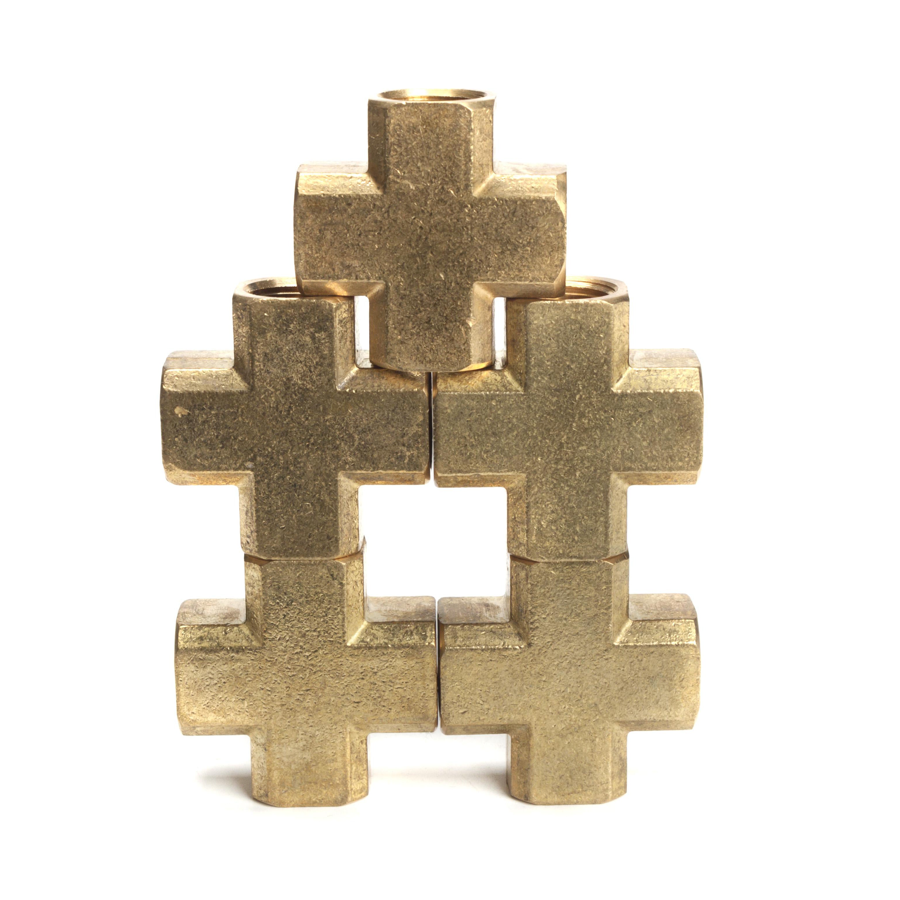LTWFITTING Brass Pipe Female Cross Fitting 3/8 Inch NPT Fuel Air Water(Pack of 5)