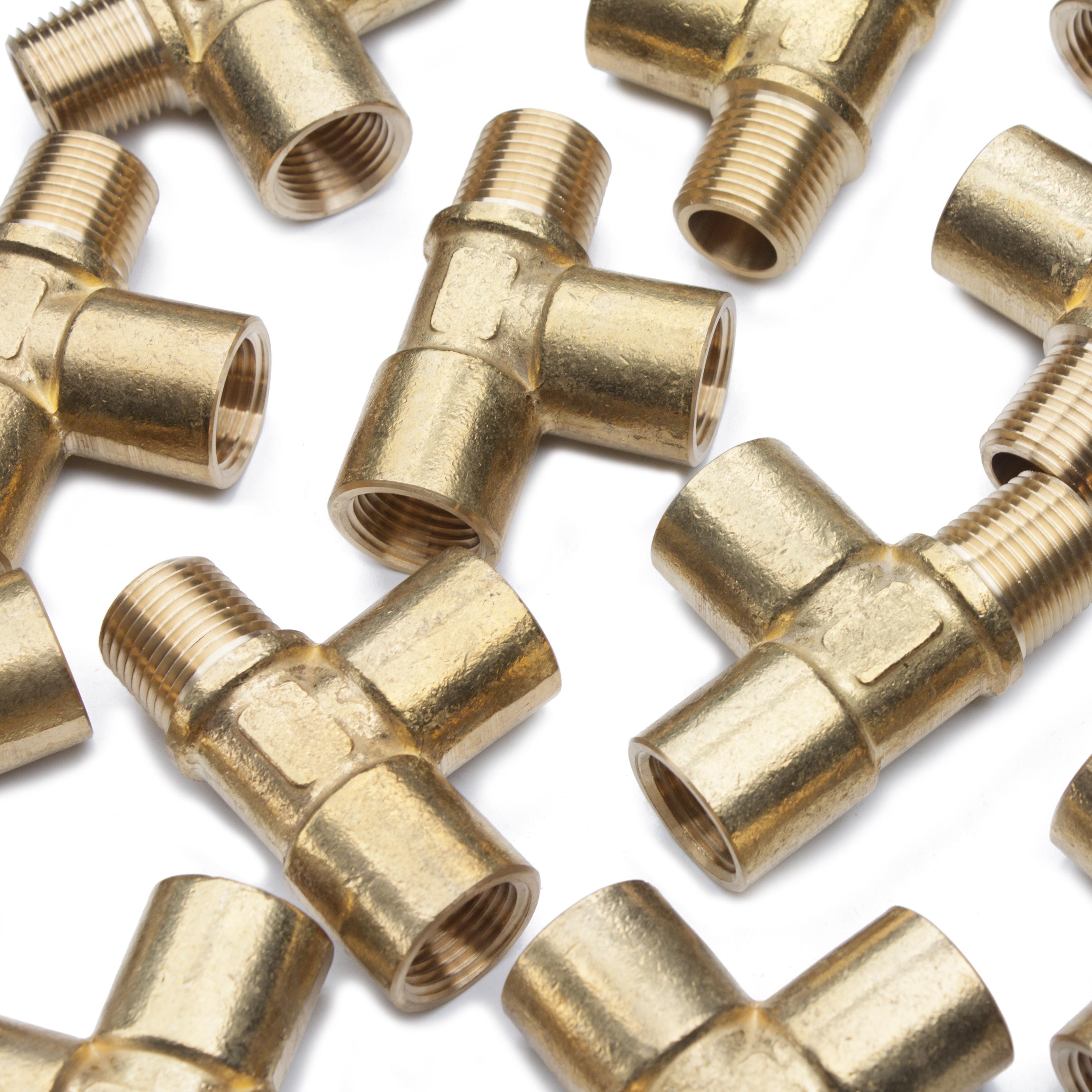 LTWFITTING Brass Pipe Fitting 1/2 Inch Male x 1/2 Inch Female x 1/2 Inch Female NPT Pipe Tee Water Fuel Boat (Pack of 50)