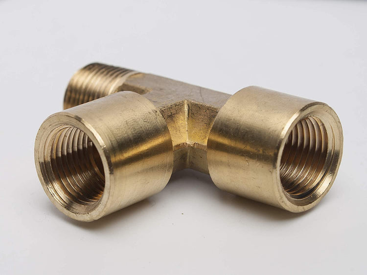 LTWFITTING Brass Pipe Fitting 3/8 Inch Male x 3/8 Inch Female x 3/8 Inch Female NPT Pipe Tee Water Fuel Boat (Pack of 100)