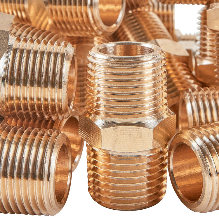 LTWFITTING Brass Pipe Hex Nipple Fitting 1/4 inch NPT x 1/4 inch BSPT Male (Pack of 500)