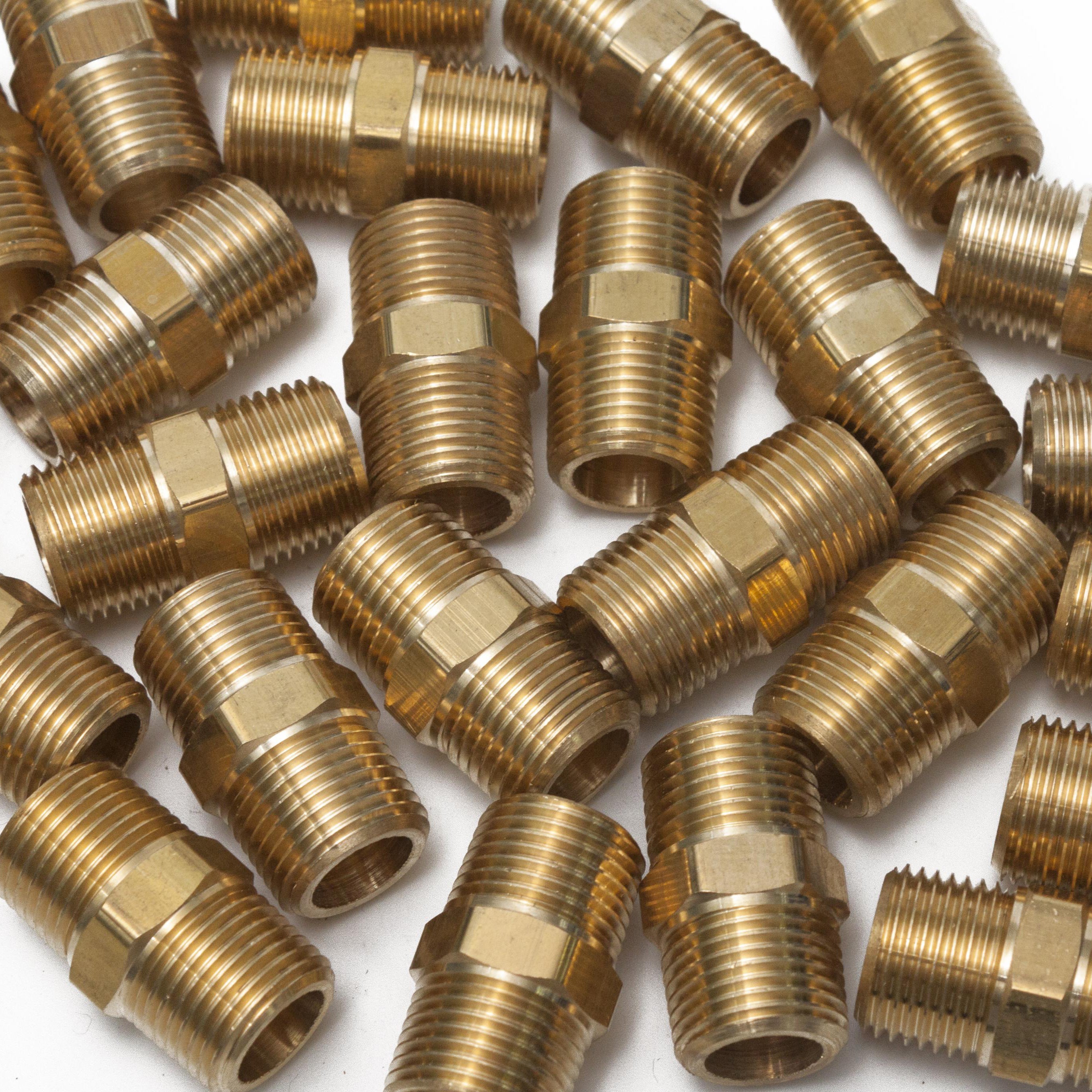 LTWFITTING Brass Pipe Hex Nipple Fitting 3/8 x 3/8 Inch Male Pipe NPT MNPT MPT Air Fuel Water(Pack of 200)