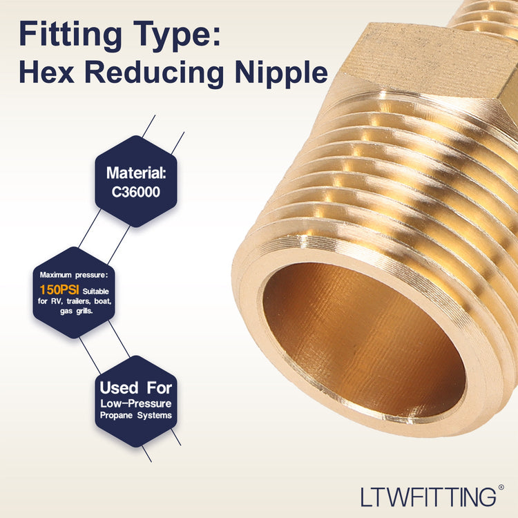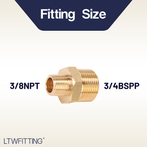 Seamlessly connect British and American standard piping systems with the LTWFITTING Brass Hex Reducing Nipple. Designed for precision and durability, this adapter bridges 3/4"" BSPP and 3/8"" NPT threads, ensuring leak-free compatibility across international plumbing, hydraulic, or industrial applications.
