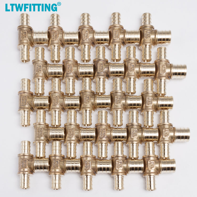 LTWFITTING Lead Free Brass PEX Crimp Fitting 1/2-Inch x 1/2-Inch x 3/4-Inch PEX Reducing Tee (Pack of 25)