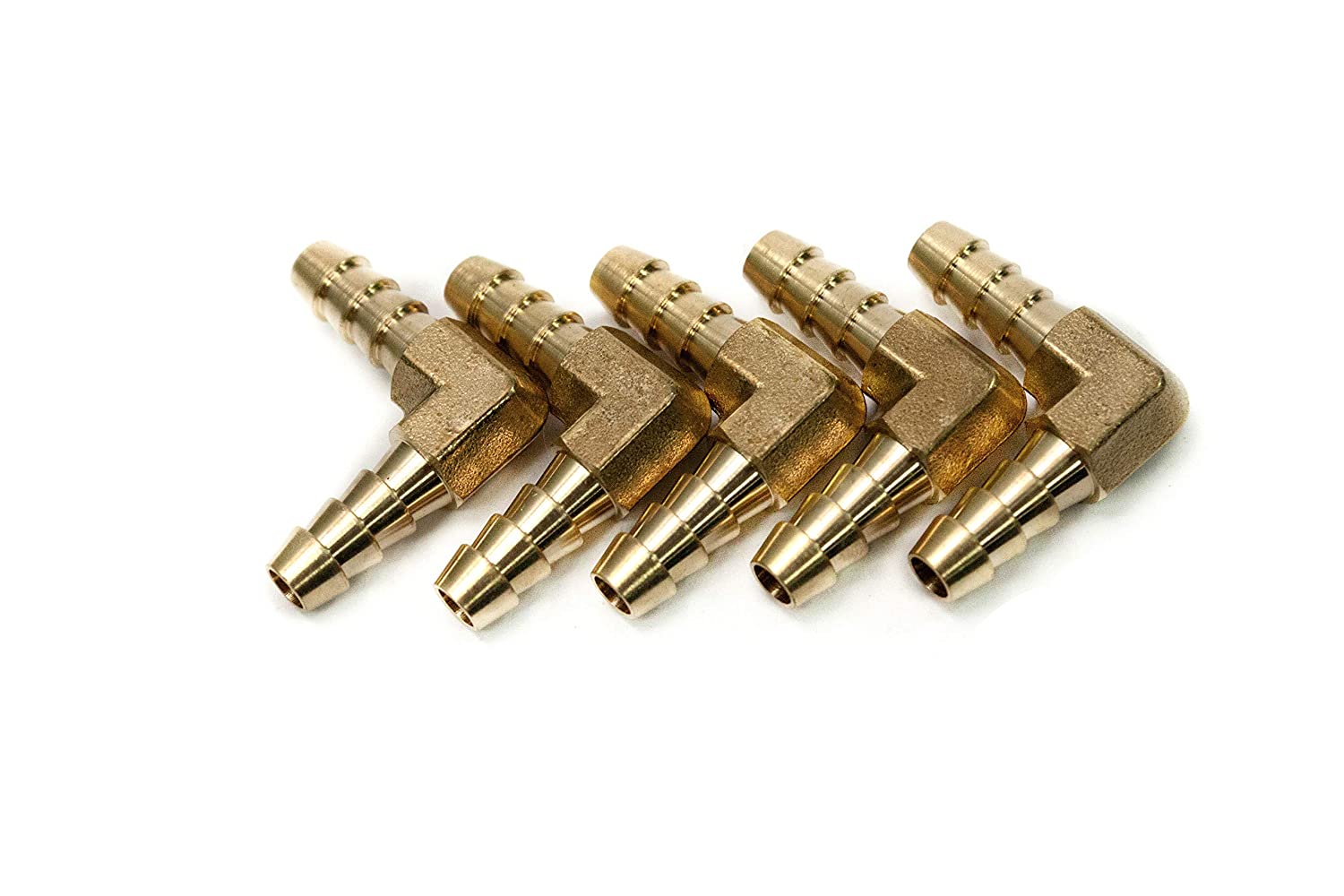 LTWFITTING LTWFITTING 90 Deg Elbow Brass Barb Fitting 1/4-Inch x1/4-Inch Hose ID Air/Water/Fuel/Oil/Inert Gases (Pack of 5)