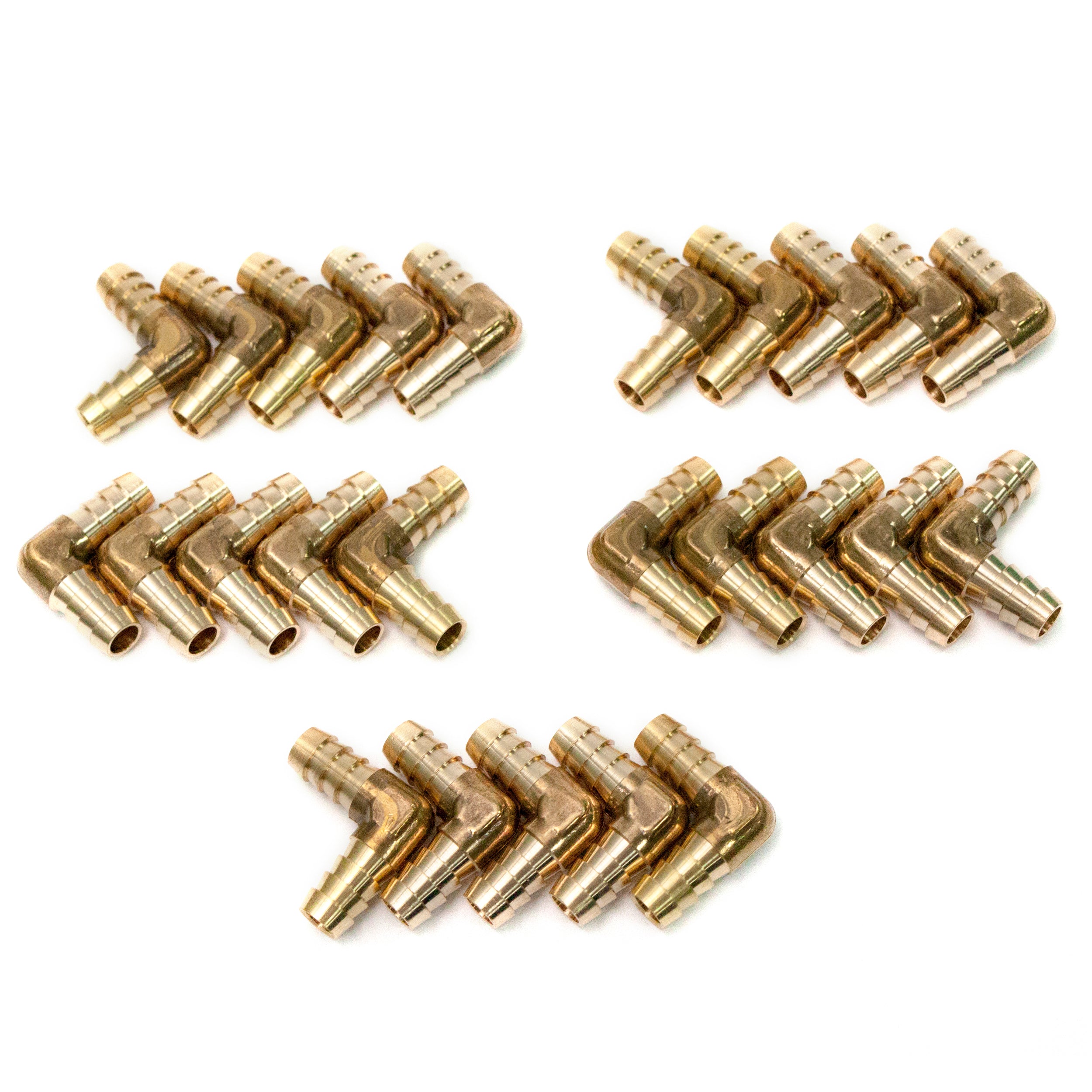 LTWFITTING LTWFITTING 90 Deg Elbow Brass Barb Fitting 3/8-Inch x3/8-Inch Hose ID Air/Water/Fuel/Oil/Inert Gases (Pack of 25)