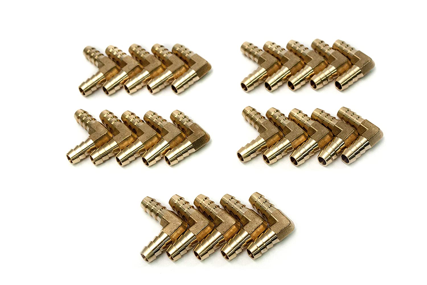 LTWFITTING LTWFITTING 90 Deg Elbow Brass Barb Fitting 5/16-Inch x5/16 Hose ID Air/Water/Fuel/Oil/Inert Gases (Pack of 25)