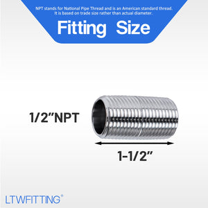 LTWFITTING Stainless Steel 316 Pipe 1-1/2 Inch Close Nipple Fitting 1/2 Inch Male NPT (Pack of 25)