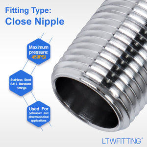 The LTWFITTING Stainless Steel 316 Pipe 1-1/2 Inch Close Nipple Fitting is a high-quality plumbing component designed for secure and reliable connections. Constructed from premium Stainless Steel 316, it offers exceptional strength, corrosion resistance, and long-lasting durability. With a 1/2 Inch Male NPT thread, this fitting ensures a tight and leak-proof connection, making it an essential choice for industrial, commercial, and residential plumbing applications.