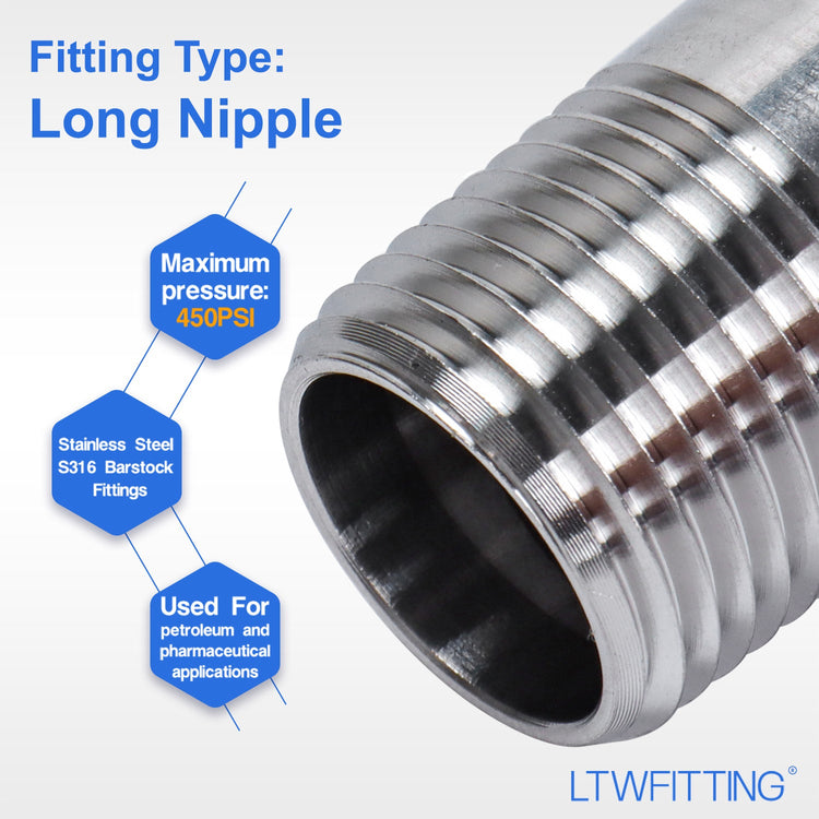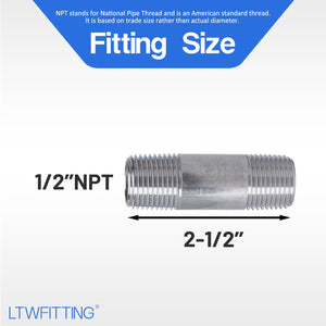 LTWFITTING Stainless Steel 316 Pipe 2-1/2 Inch Long Nipple Fitting 1/2 Inch Male NPT (Pack of 2)
