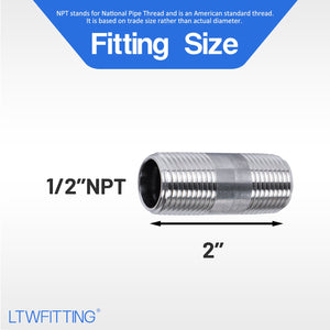 LTWFITTING Stainless Steel 316 Pipe 2 Inch Long Nipple Fitting 1/2 Inch Male NPT (Pack of 20)