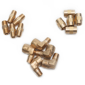 LTWFITTING Value Pack Brass 1/8-Inch Pipe Female NPT Coupling, Hex Nipple,90 Deg NPT Street Elbow Forged Fitting (Pack of 15)