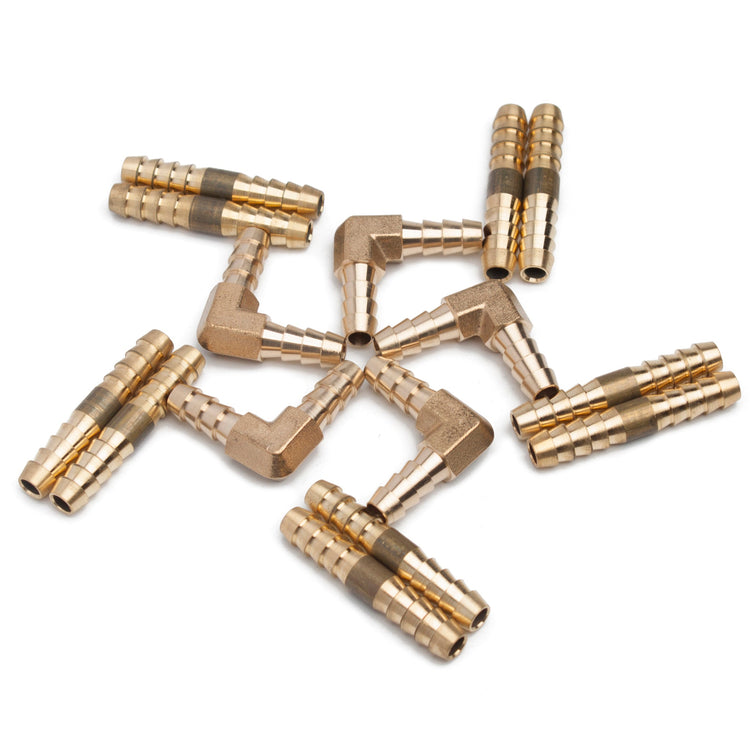 LTWFITTING Value Pack Brass Barb 1/4-Inch Hose ID Splicer Mender and 1/4-Inch x 1/4-Inch Hose ID 90 Deg Elbow (Pack of 15)