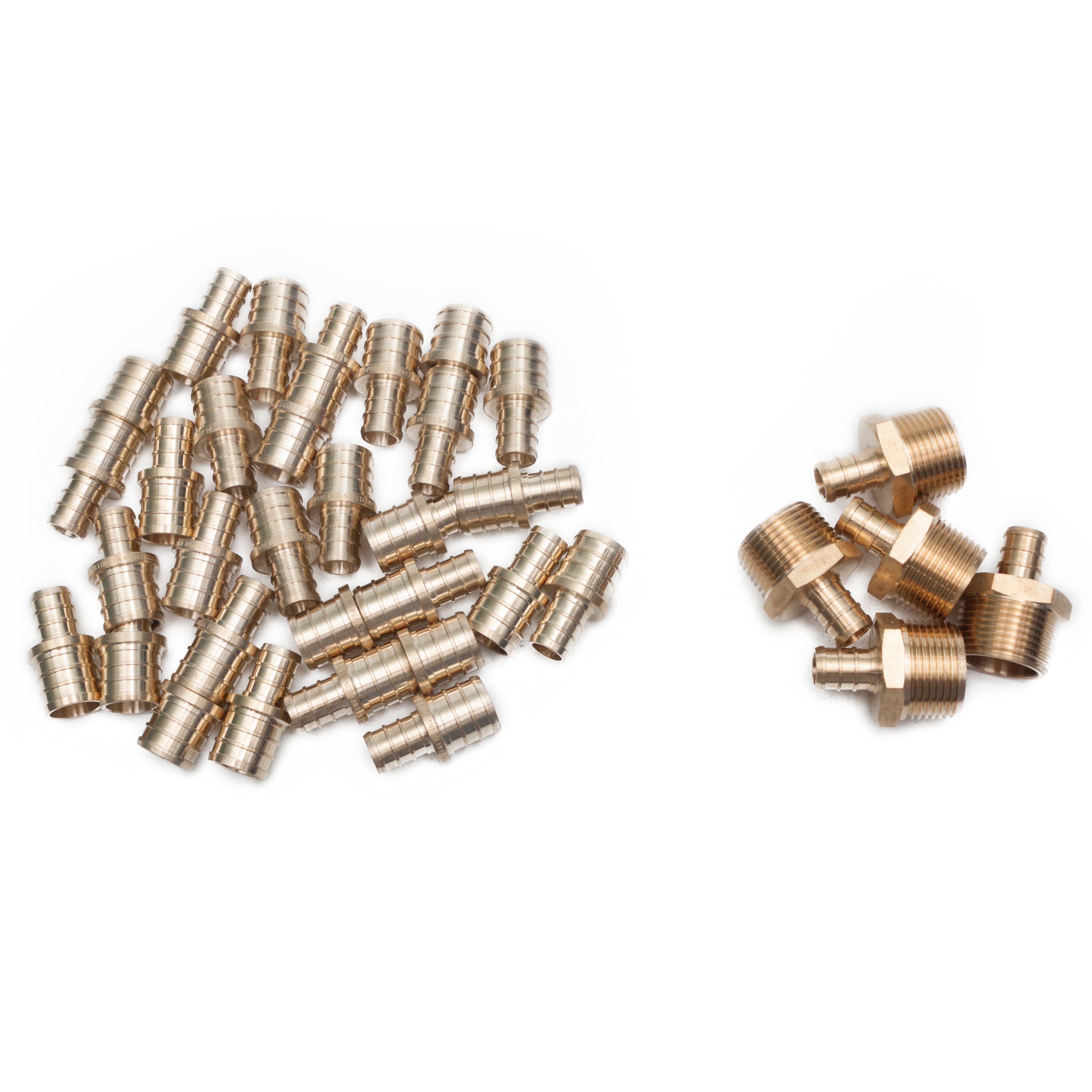 LTWFITTING Value Pack Lead Free Brass 1/2-Inch PEX x 3/4-Inch Male NPT Crimp Adaptor and PEX Reducing Coupling (Pack of 35)