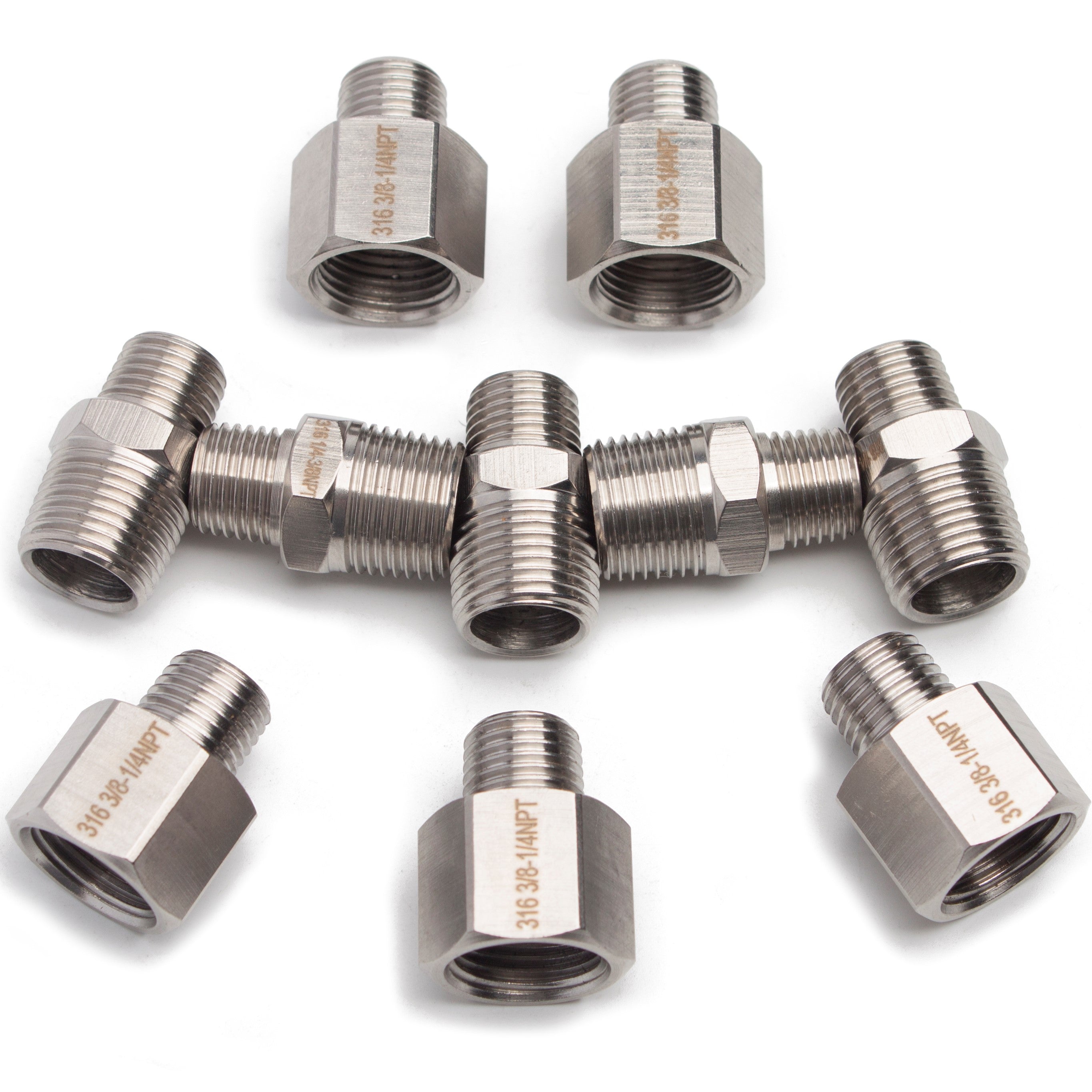 LTWFITTING Value Pack Stainless Steel 316 Pipe Fitting 3/8 Inch Female x 1/4 Inch Male NPT Adapter, 3/8 Inch x 1/4 Inch Male NPT Hex Reducing Nipple(Pack of 10)